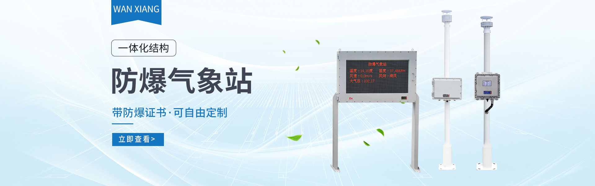 山東萬象環(huán)境科技有限公司官網(wǎng)主要產(chǎn)品有防爆氣象站,校園氣象站,農(nóng)業(yè)氣象站,負(fù)氧離子監(jiān)測站,超聲波氣象站,歡迎咨詢13276361891!